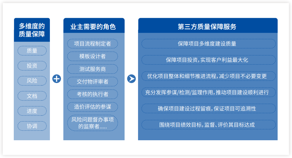 在项目实施中,taptap点点官网以招投标文件、建设合同、立项方案等文件为依据,结合taptap点点官网系统的项目监理经验,对整个项目实施进行全程管理,通过“四控、三管、一协调”等专业手段,协助建设单位对项目进行监督管理,包括对承建单位的行为进行监控,保证开发和施工行为符合国家法律法规和有关政策,制止开发和施工行为的随意性和盲目性,促使开发进度、质量按计划(合同)实现,确保工程合法、科学、合理、经济,促进建设进度、投资、质量达到工程建设合同规定的目标。