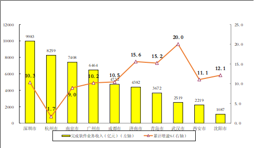 图7 2022年前十位副省级中心城市软件业务收入增长情况