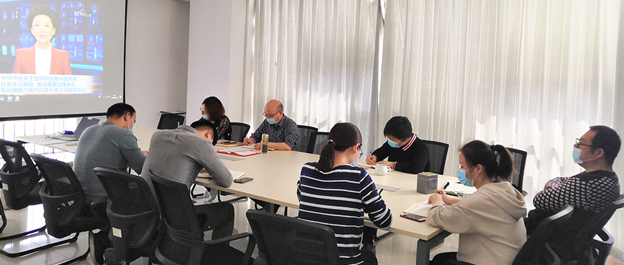 为深入学习贯彻党的十九届四中全会精神,11月27日下午,taptap点点官网党支部党员同志参加了由山科控股党委举办的学习贯彻党的十九届四中全会精神宣讲报告会。集团党委负责同志作宣讲报告。